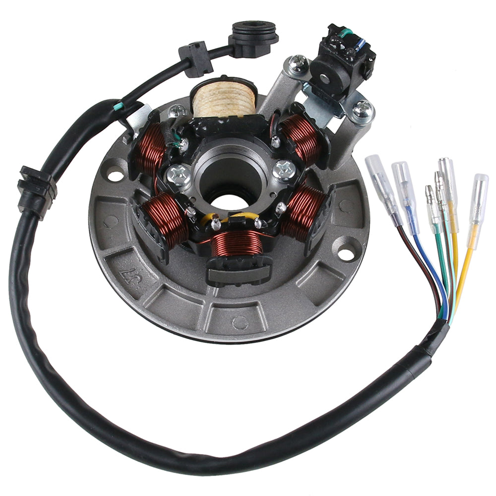 Magneeton pohjalevyllinen staattori kuudella käämillä sekä pick-up käämillä.